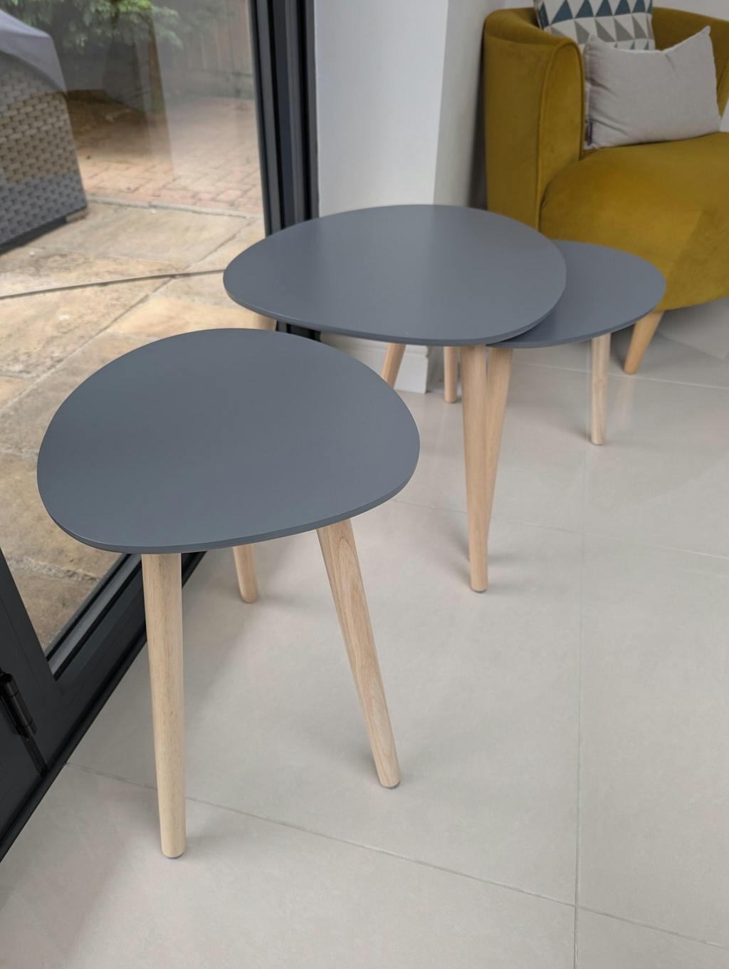 Love this set of tables. Good quality, a lovely grey colour, works well in my kitchen/living space. Ignore the fact the smaller table is the tallest in my photo, my husband put the legs on the wrong tables, but I haven't bothered to change them yet and might not as quite like them!