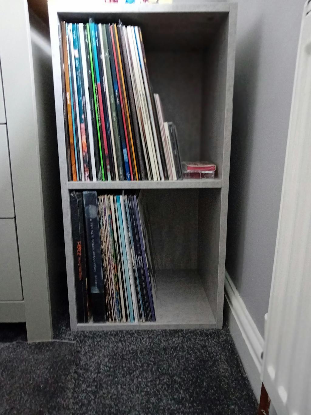 This is a very well made storage unit and looks great in the concrete colour. Very easy to put together and ideal for my LP records and larger books. Very good value for money.